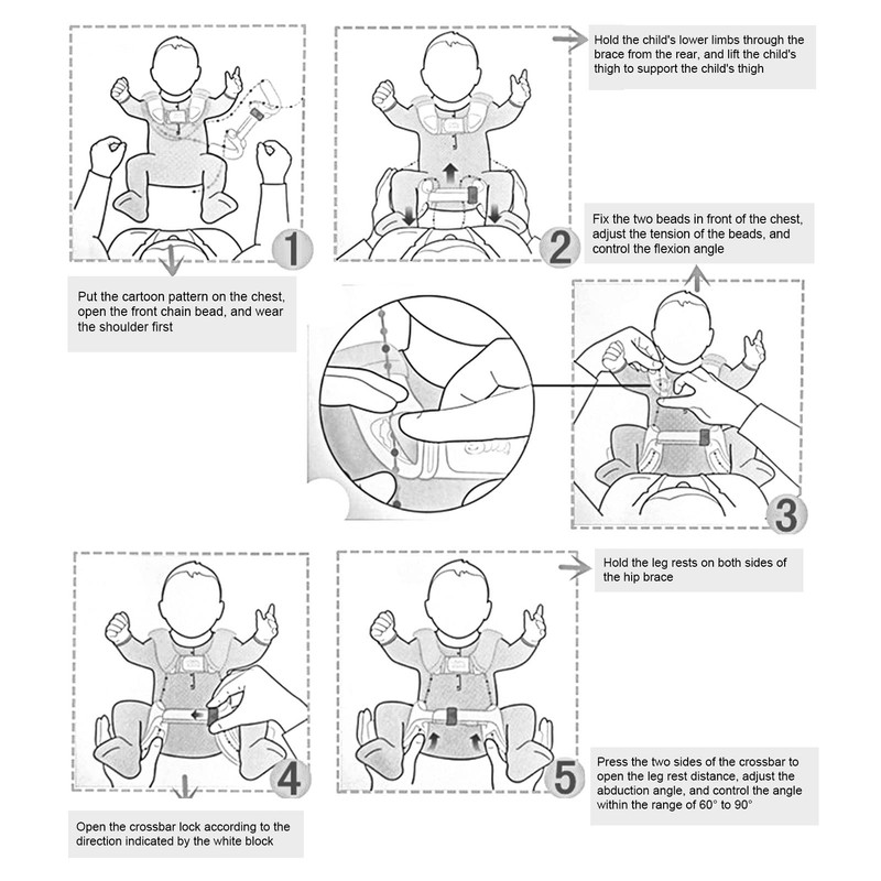 - CONVENIENT AND PRACTICAL: The Infant Hip Abduction Brace Corrector is both convenient and practical, its easy-to-use design of curl and adjustable buckle allows users to adjust the tightness of the orthosis according to the specific condition of the infant, in addition, the orthosis is very easy to disassemble and clean with simple operation, which provides great convenience for the use and maintenance of the infant