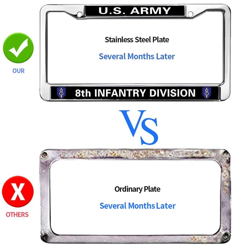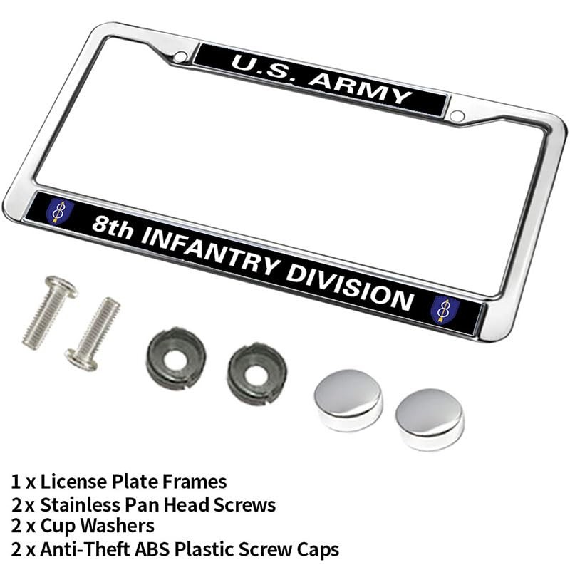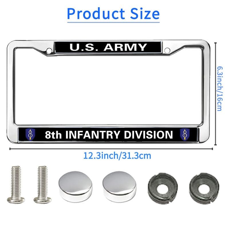 Infantry Division Flag License Plate Frame Chrome Army 8th Infantry Vet Durable License Plate Frame Proud US Veteran License Plate Frame for Independence Day