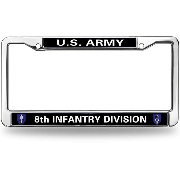 Infantry Division Flag License Plate Frame Chrome Army 8th Infantry Vet Durab...