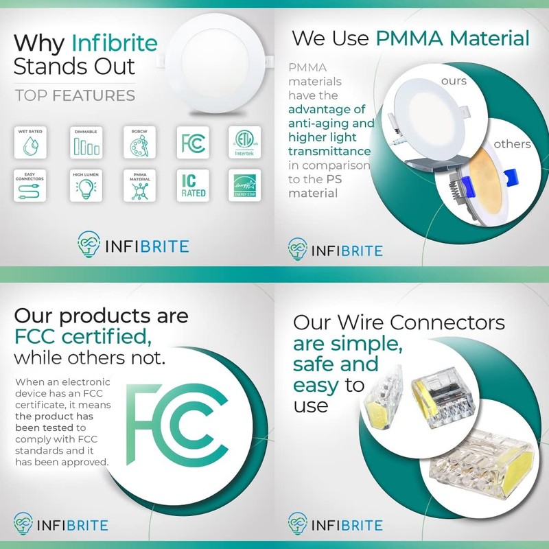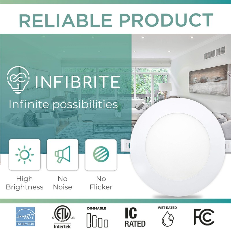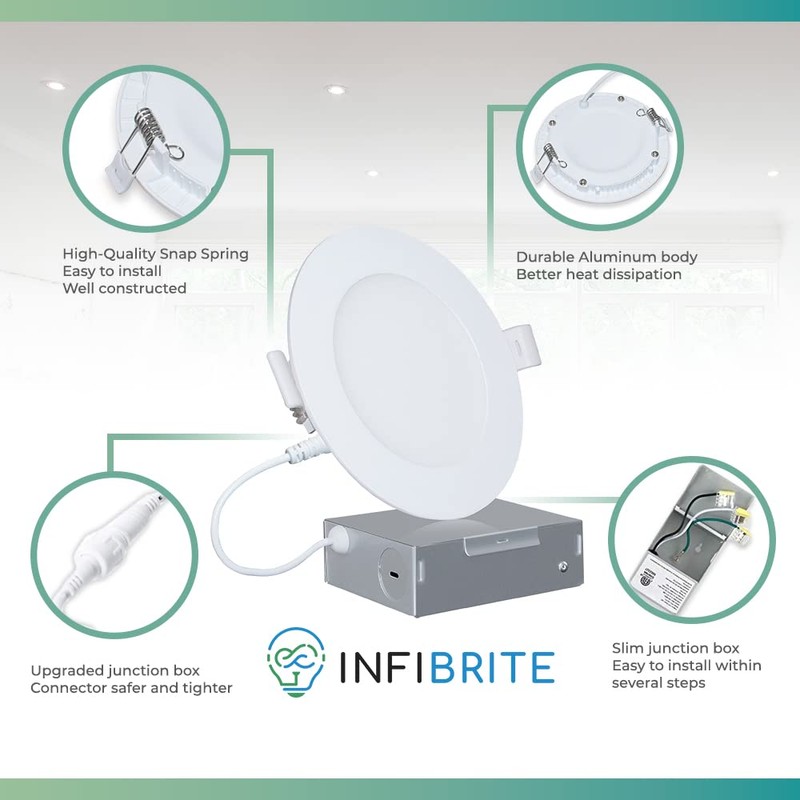 INFIBRITE 4 Inch 6000K Clear White 9W 750LM Thin LED Ceiling Light Kit, Dimmable, Wet Rated