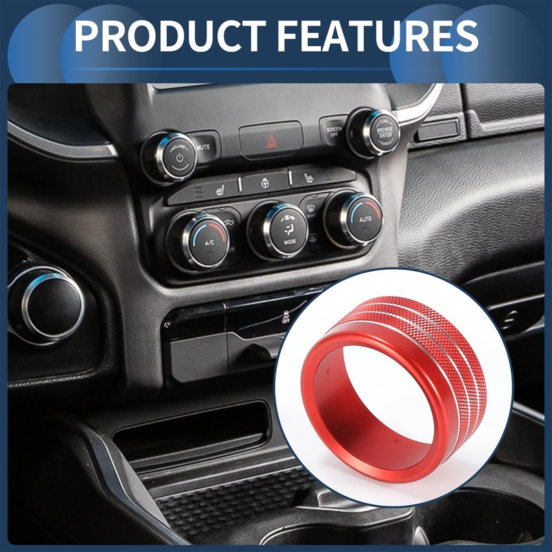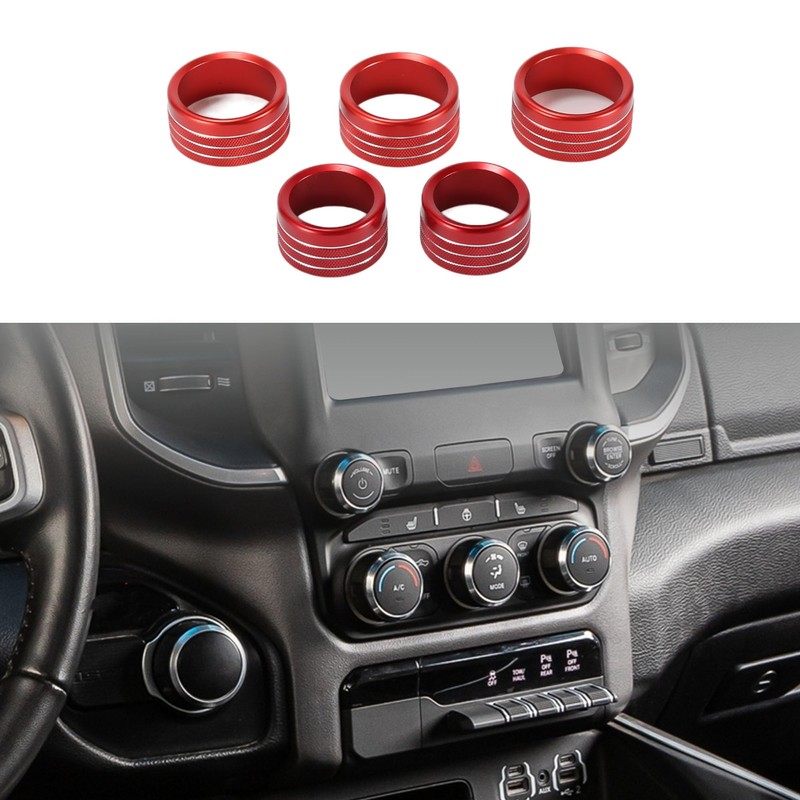INFINAUTO AC Klimaanlage Medien Lautstärkeregler Schalterknopf Abdeckungsring, Innenverkleidung für Dodg für RAM 2018-2022 Rot, 5 Stück.