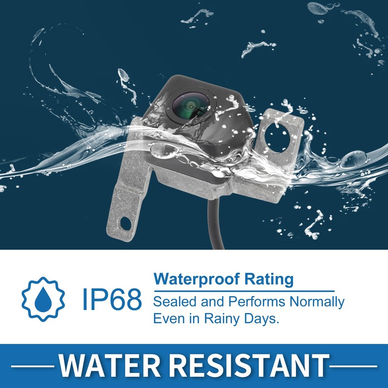 - [Waterproof] This parking assist camera has a waterproof rating at IP68 for all conditions like heavy rain or car washes. Its sturdy metal casing provides exceptional strength, heat resistance, longevity, and abrasion resistance, which enables dependable performance and structural integrity in all environments.