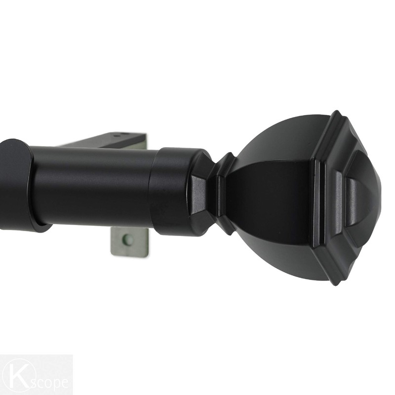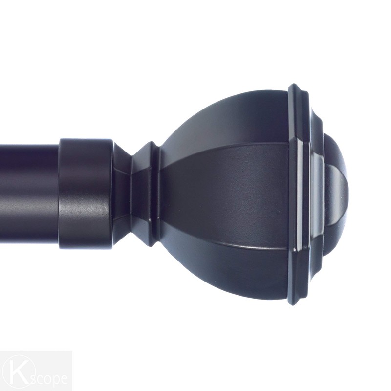 Infinette Venice 1-1/8 Inch Diameter Single Window Curtain Rod Set, 72 Inch, Black