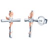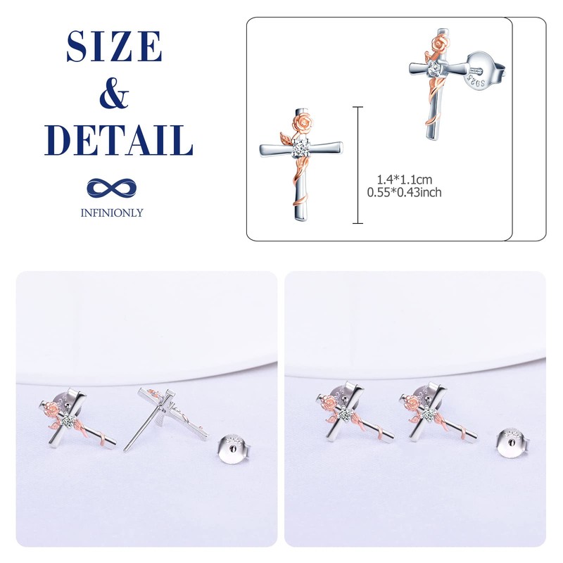 INFINIONLY Women's girl's Earrings Studs, 925 sterling silver earring stud, Rose gold flower entwined with silver cross earrings, Double color plating process, Elegant, Inlaid with shiny zircon