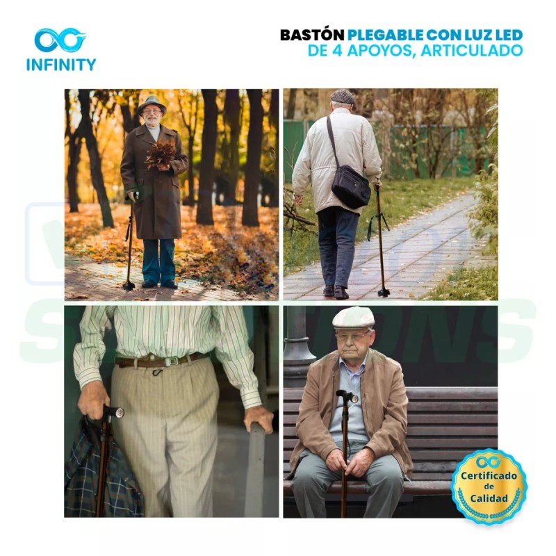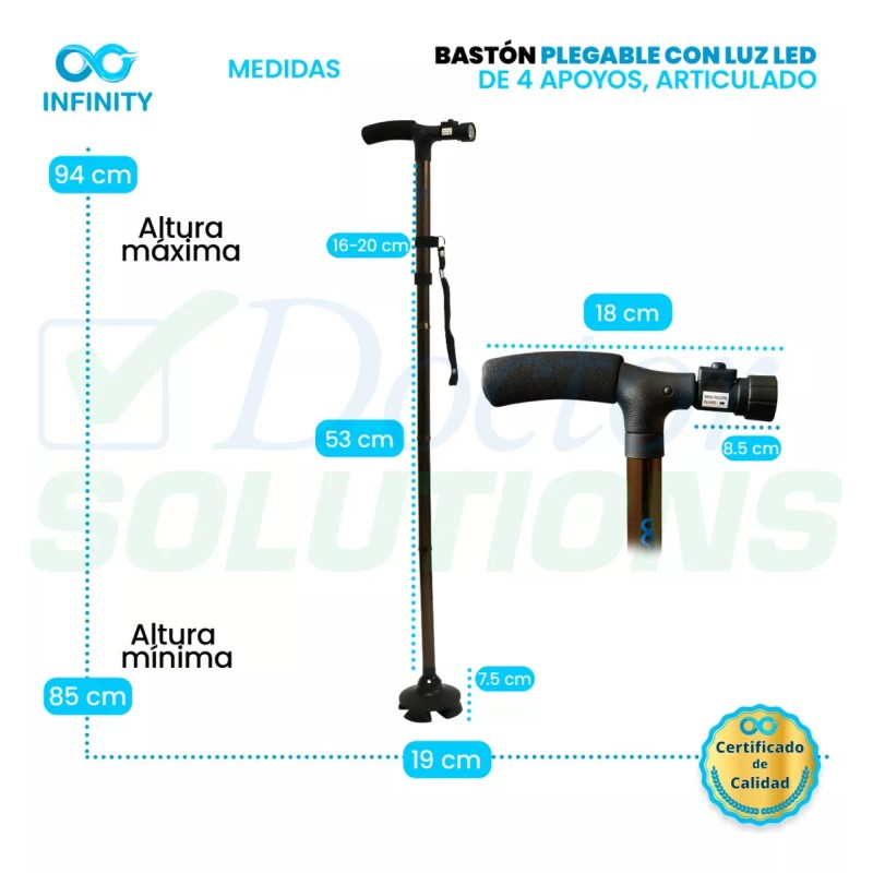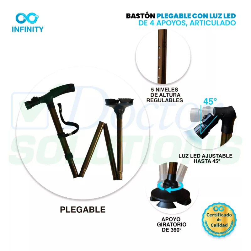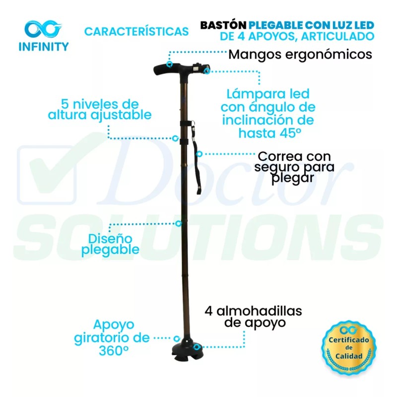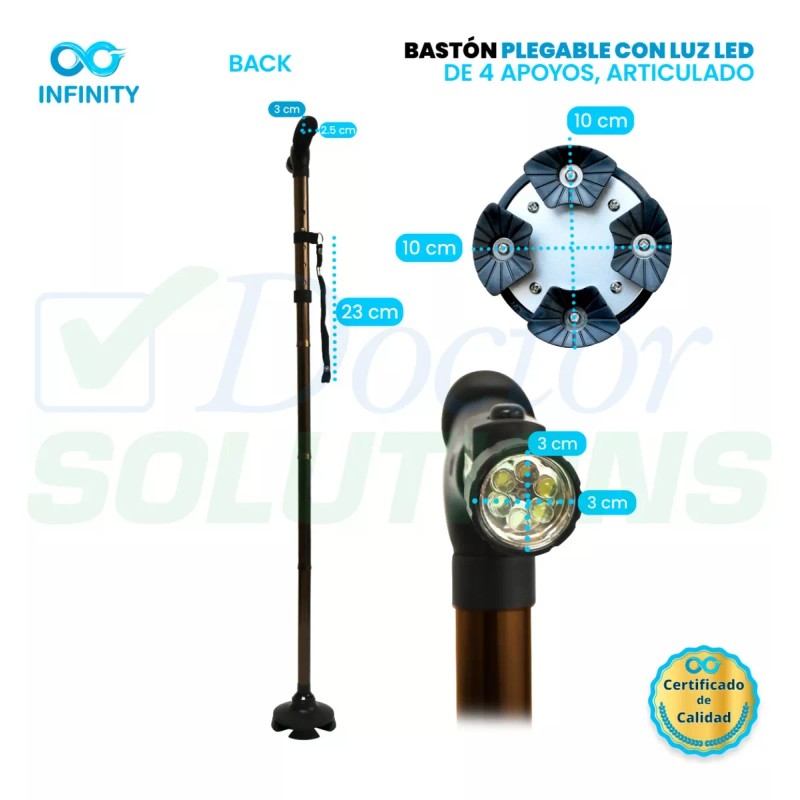Infinity Bastón Infinity Luz Led 4 Apoyos Plegable Base Articulada
