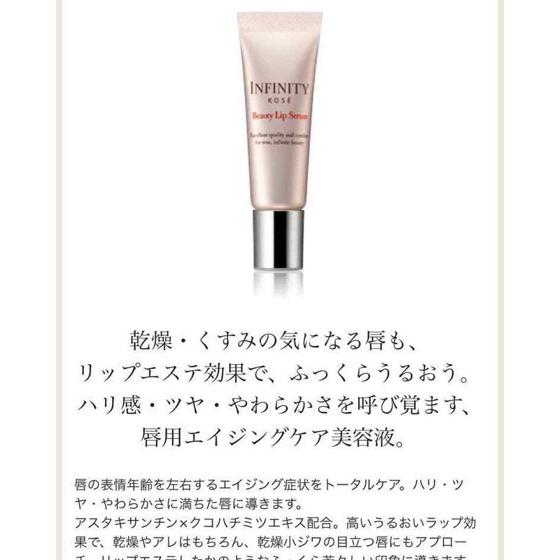 - KOSE Infinity Beauty Lip Serum 10g Lip Aging Care Serum Total Care for Aging Conditions of Lip Facial Age It leads to lips full of stiffness, gloss, and softness. Formulated with Astaxanthin x Kukohoney Honey Extract. It has a highly moisturizing wrap effect, so it can be used for dry and loose lips, as well as for showing off dry and small wrinkles. It will give you a plump and youthful impression as if you were wearing lip este. Contains veneana (safflower) oil It moisturizes and care for dullness, and makes healthy blood tones