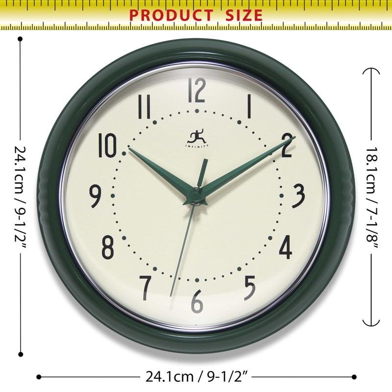 - RETRO LOOK ✅ The timeless line of Retro Infinity Instruments wall clocks achieves a distinguished and unique retro look. Bring back the charm of 60 years ago with a retro-inspired wall clock for your kitchen, living room, bedroom, or bathroom.