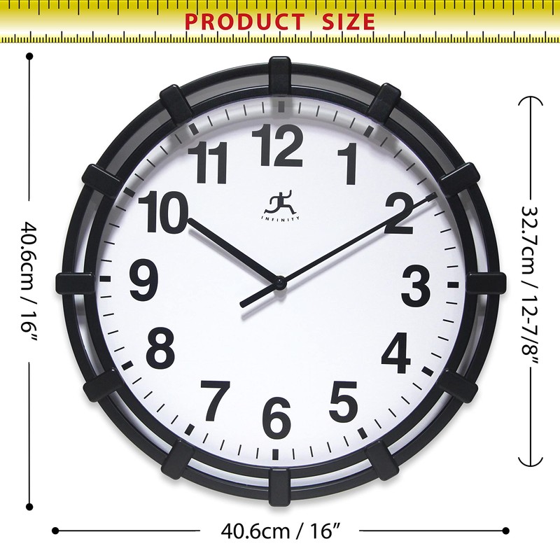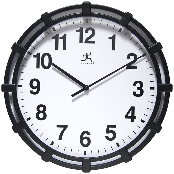 Infinity Instruments Nautical Style 16 Inch Indoor Clock, Easy to Read Wall Clock, Plastic, Battery Operated Wall Clocks for Indoor Decor - Black