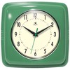 Infinity Instruments Square Silent Retro 9 inch Mid Century Modern Kitchen Diner Retro Wall Clock Quartz Sweep Movement (Green)