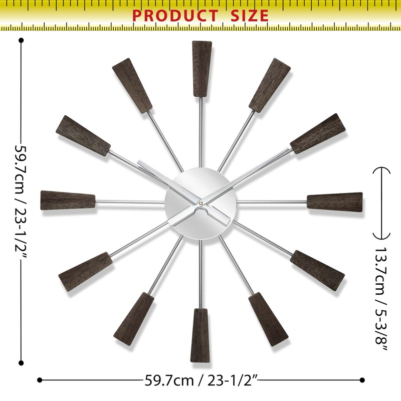 - 23.5 in Starburst Wall Clock for Indoor Use