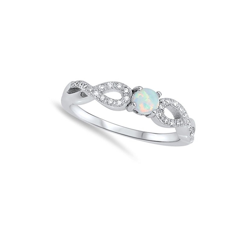 Infinity Knot Round White Simulated Opal Ring New .925 Sterling Silver Band S...