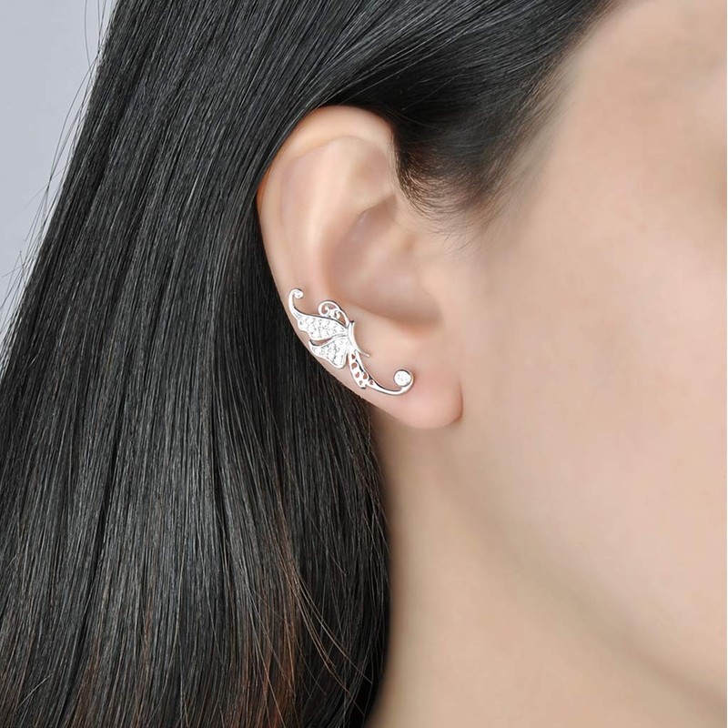 Infinity U Unique Butterfly Women's Ear Cuff 925 Sterling Silver Cubic Zirconia Stud Earrings Ear Cuff Earrings, Silver
