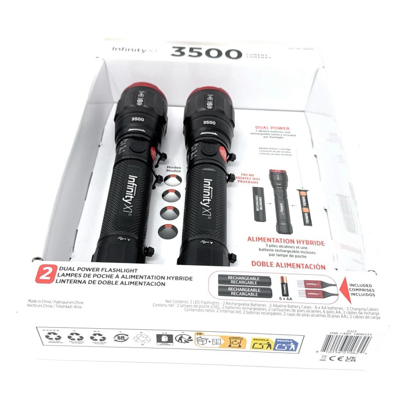 Infinity X1 3500L Dual Power Focusing Flashlight, 2-pack