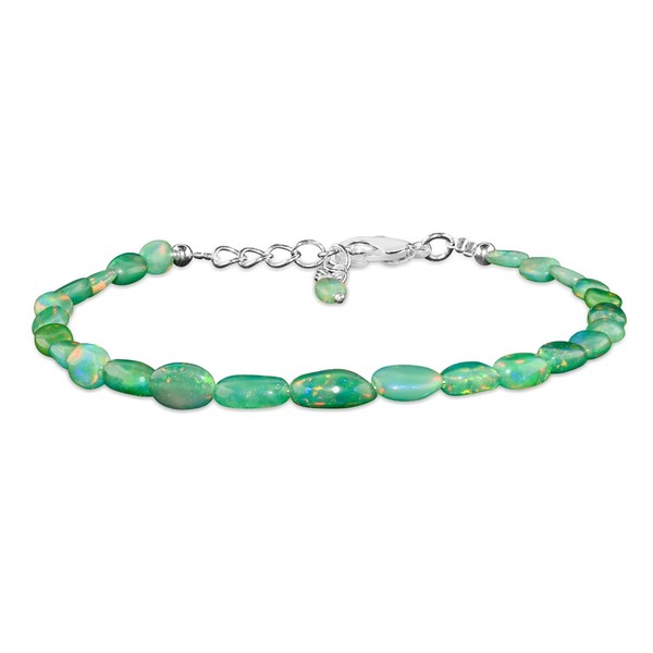 InfinityGemsArt Green Opal Bracelets for Women Natural Gemstone Beaded Dainty October Birthstone, Healing Crystals Jewelry in Silver Plated Chain 8 inch