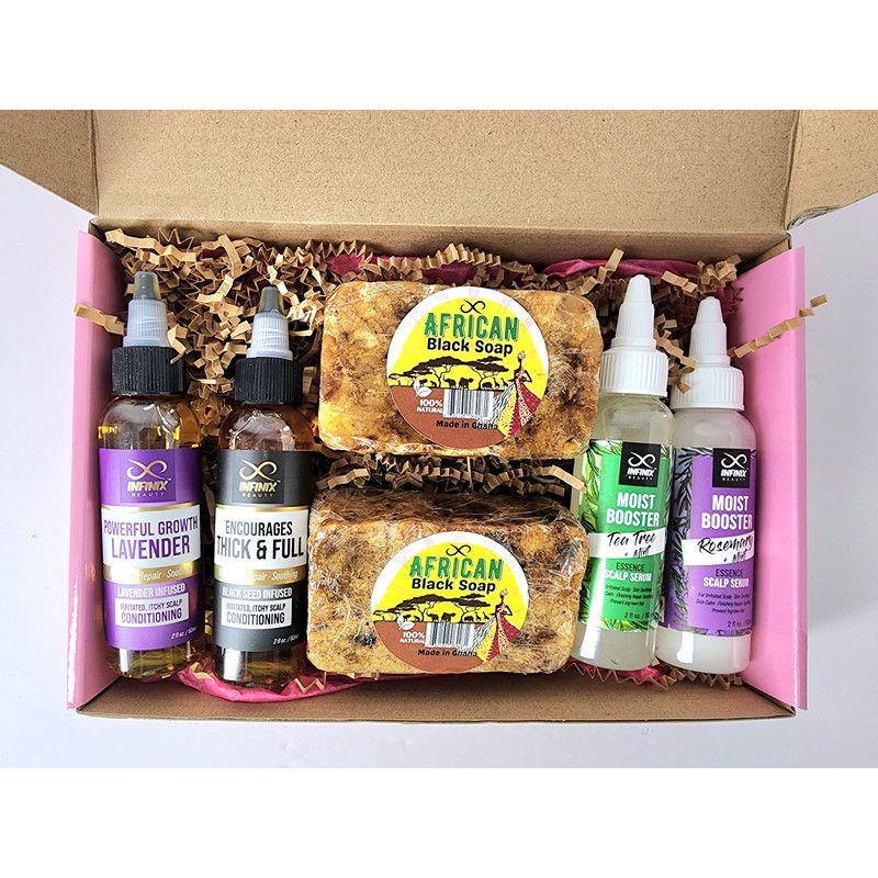 Infinix [6 pcs Gift Set] 4 Hair growth oil + 2 African Black Soap, Thick and Full treatment oil, Power Grow Lavender, Vitamin Oil, Teatree Peppermint