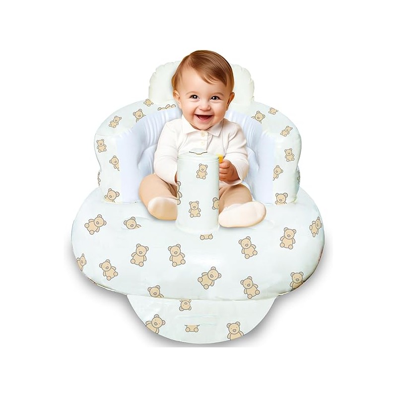 Inflatable Baby Seat for Babies 3-36 Months Built-in Air Pump Toddler Floor Seat with Back Support for Sitting Up Portable Blow Up Baby Chair for Feeding Shower and Playtime (Bear)