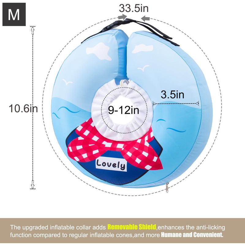 5. Our inflatable collars come in five sizes, small-X Large, suitable for various breeds of dogs and cats. Please measure your pet's neck circumference before purchasing to choose the most perfect size.