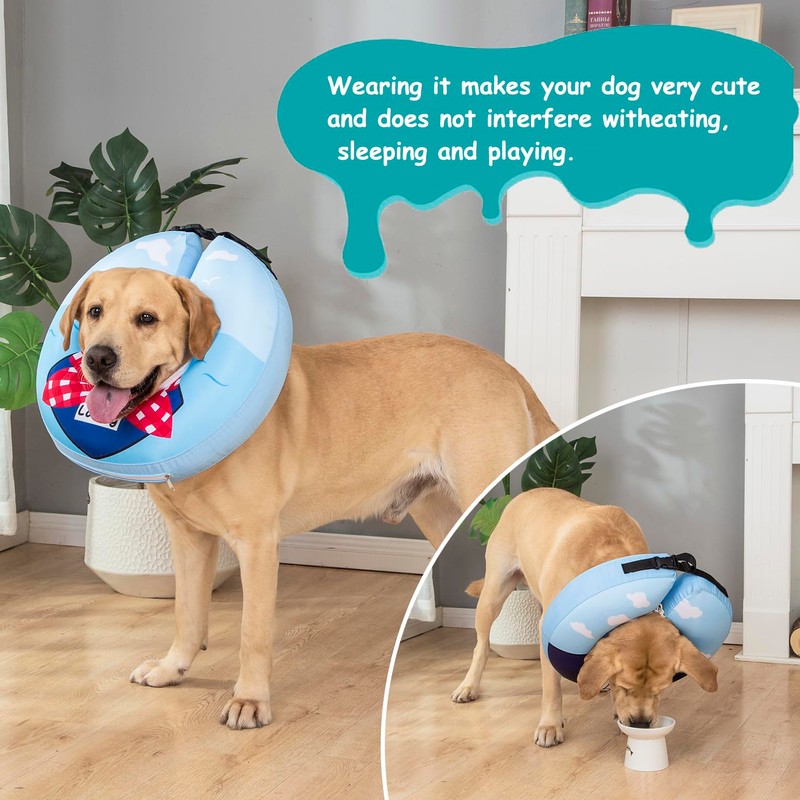 - 【Soft and Comfortable】This inflatable dog collar is lightweight and soft overall, different from traditional hard dog cones. Dogs wear it without pressure and have a comfortable touch. They can eat, drink, sleep, and run on the lawn normally, making their recovery process easier.