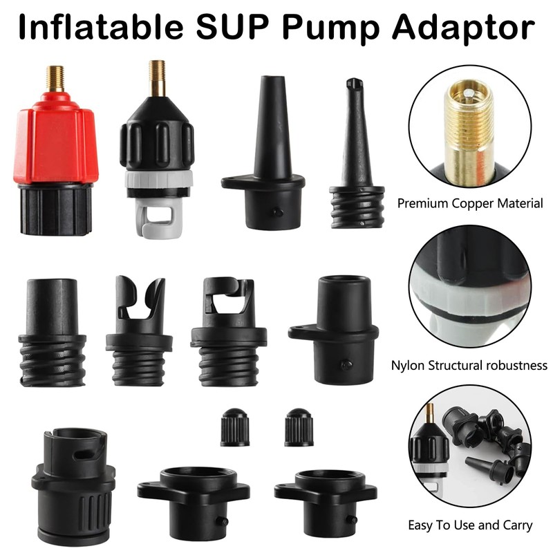 Inflatable SUP Pump Adaptor, Paddle Board SUP Valve Adapter with 9 Standard Conventional Air Pump Adapter for Inflatables, Paddle Board Pump Attachment Inflatable Boat Air Valve Adapter(11Pcs)