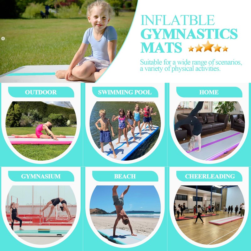 - 【HIGH QUALITY MATERIAL】The material of gymnastics tumbling mats is high-quality PVC tarpaulin, with better air-tightness and durability since reinforcement whose material is all seams. It's extremely safe when you using it because this tumbling mat is leak-free and it is no smell because high-grade material.