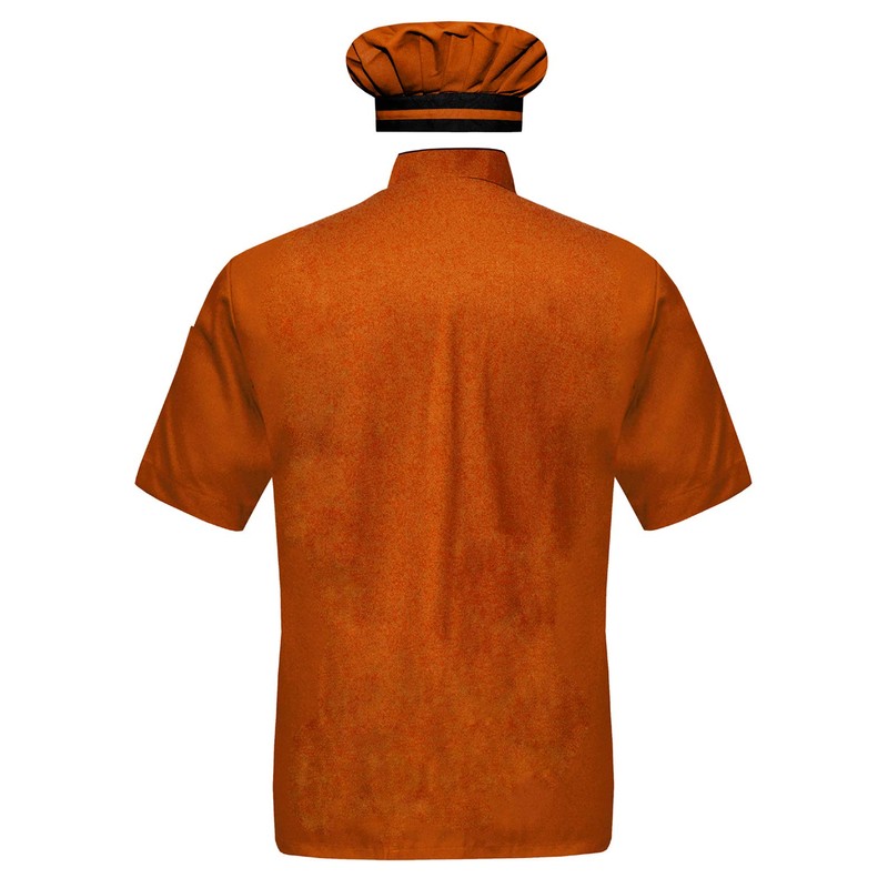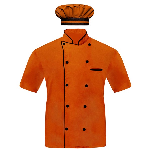 INFOHANDMADE Modeling Men Chef Jacket Half Sleeves in 10 Colours Chef Coat with Cap Orange (Medium)