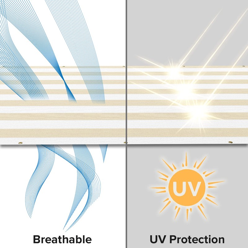 INFRANGE Balcony Privacy Fence Screen 3' x 141' Mesh Windscreen Fencing Shield Cover Included Cable Ties for Deck Apartment Porch Backyard Patio Outdoor, Beige White Strip