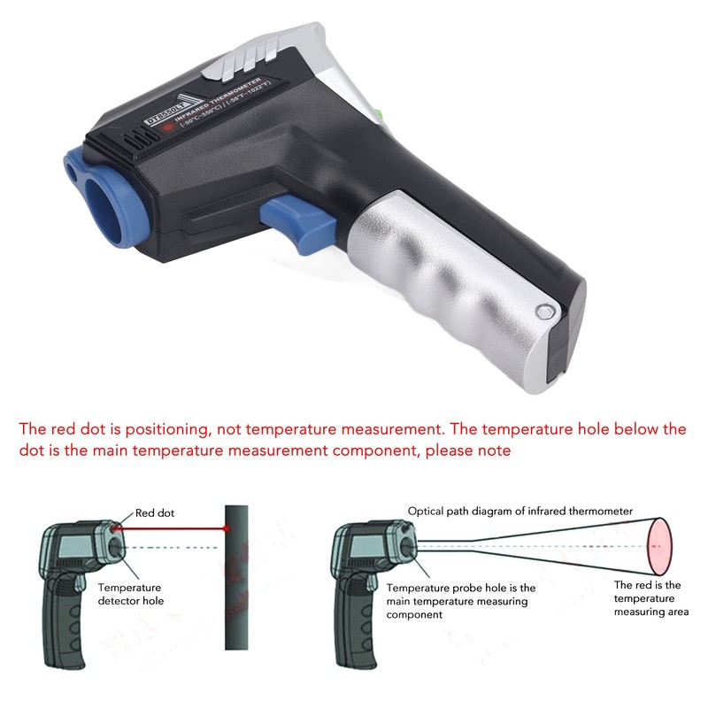 - Suitable workmanship: The infrared thermometer can measure the temperature below the boiling point and freezing point. For example, for cooking, oven, air conditioning, refrigerator or soap making, etc.