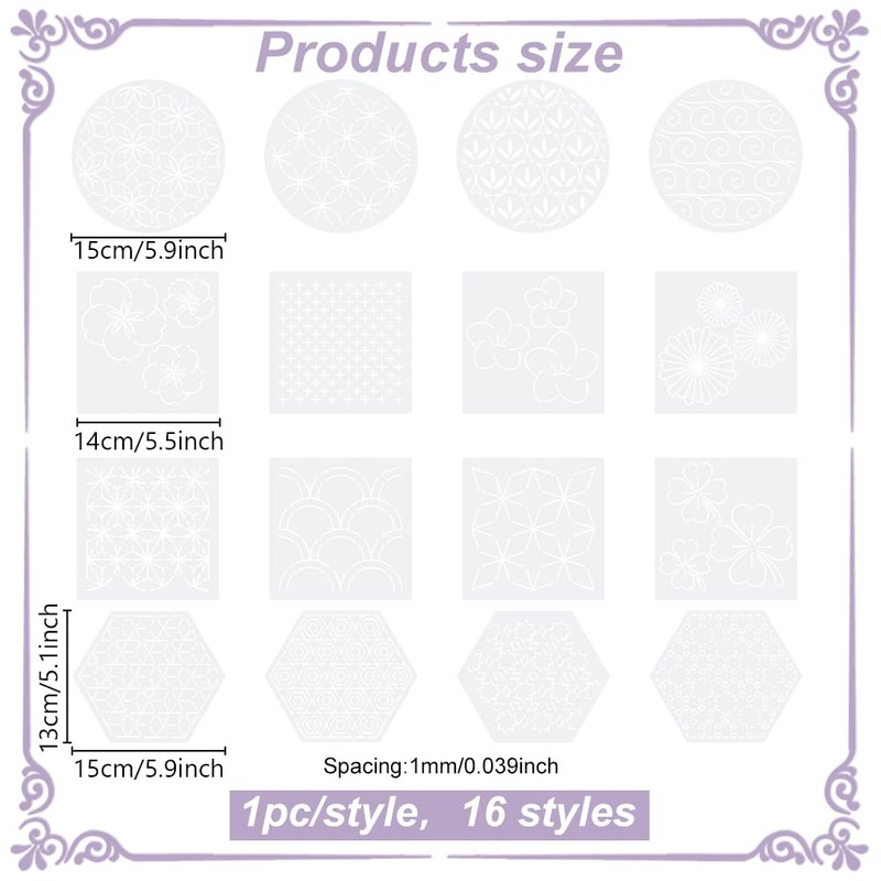 - SIZE INFORMATION: The square Sashiko templates have a size of 5.5"×5.5". They are suitable for most fabrics such as shirts, pants, and bags and are practical for daily use