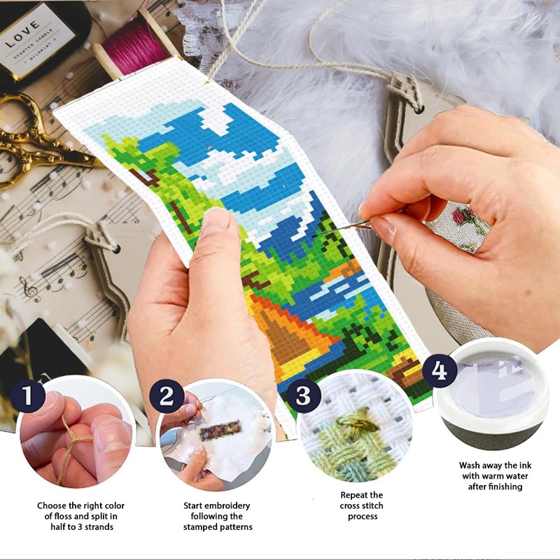 - ENHANCE HANDS-OFF SKILLS: These DIY cross stitch beginner kits with innovative and unique designs help to improve concentration, dexterity and hand-eye co-ordination, as well as being a great way to relax. You will get a great sense of satisfaction and achievement after completing these handmade embroidery bookmarks sets