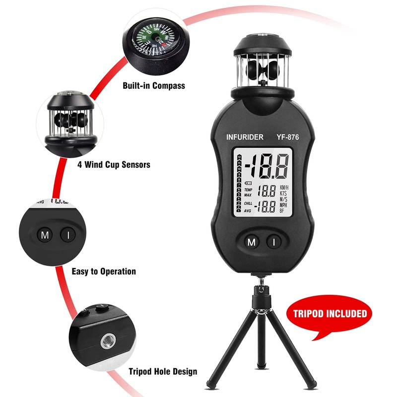 INFURIDER Digital Anemometer Handheld,Wind Speed Meter Gauge for Wind Velocity Air Speed,Wind Direction Meter with Compass + Small Tripod for HVAC Drone Outdoor Activities【Upgraded Anemometer】