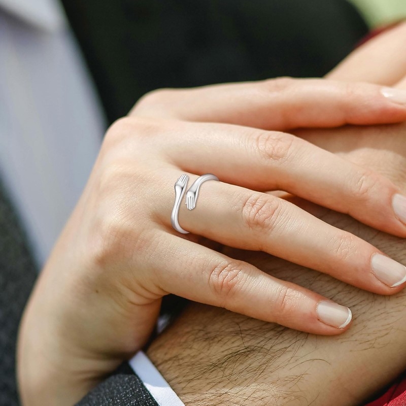 INFUSEU Hug Ring for Daughter Gifts from Mom Father Love You Jewelry 925 Sterling Silver
