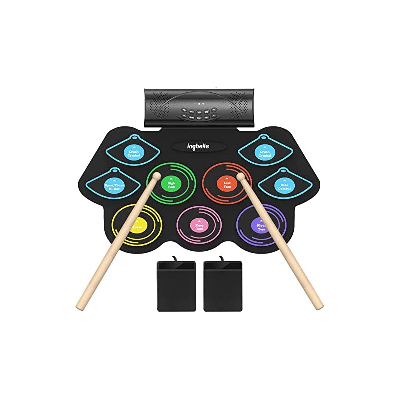 ingbelle Electronic Drum Set with Bluetooth, 9 Drum Pads, Roll up Electric Drum Set with Headphone Jack, Built-in Dual Speaker, Drum Stick, Foot Pedals, Best Gift for Christmas Holiday Birthday