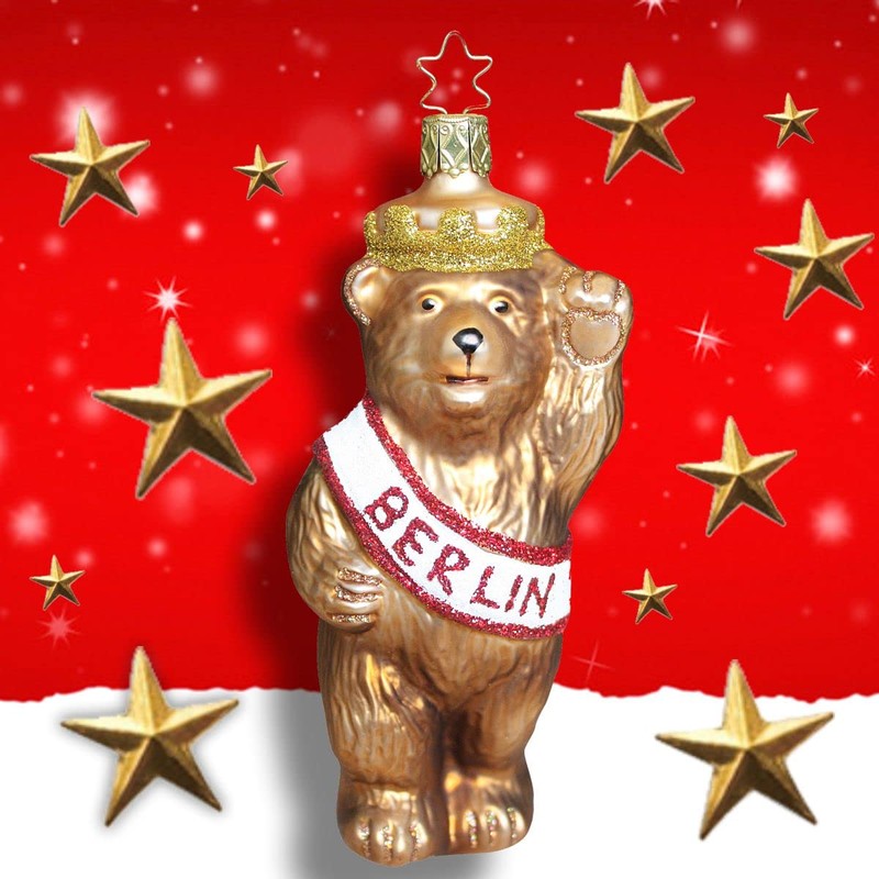This offer is for one piece Christmas tree bauble Berlin bear by Inge's Christmas Decor GmbH, item IG-1-067-12, without decoration and accessories.