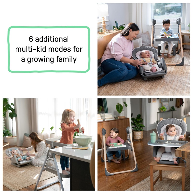 • Has your household grown? This high-chair can cater to two kids at once in 6 different ways when you use as a rocker, desk, tower, and/or chair topper