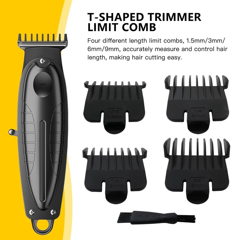 INGQI Hair Trimmer Guards Set for Andis T Outliners, From 1/16-3/8 inch Snap-on Blade Attachment Combs Set, 4 Combs w/ 1 Brush