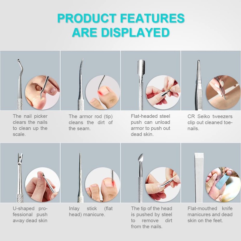 - Safety And Convenient:Built in 100% safety surgical grade stainless steel, never go rust and easy to disinfect;designed by non-slip, they’re easy to grip and handy to use. Good to clean away debris and dirty deep into the flesh for ingrown nails AND under nails at home on your own