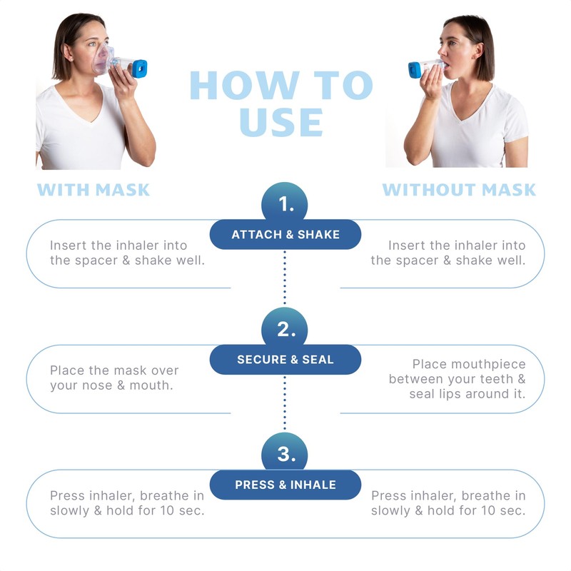 - Comfortable Adult Face Mask: The spacer comes with a comfortable adult face mask, providing a secure fit and promoting ease of use during inhalation, enhancing user comfort and compliance.