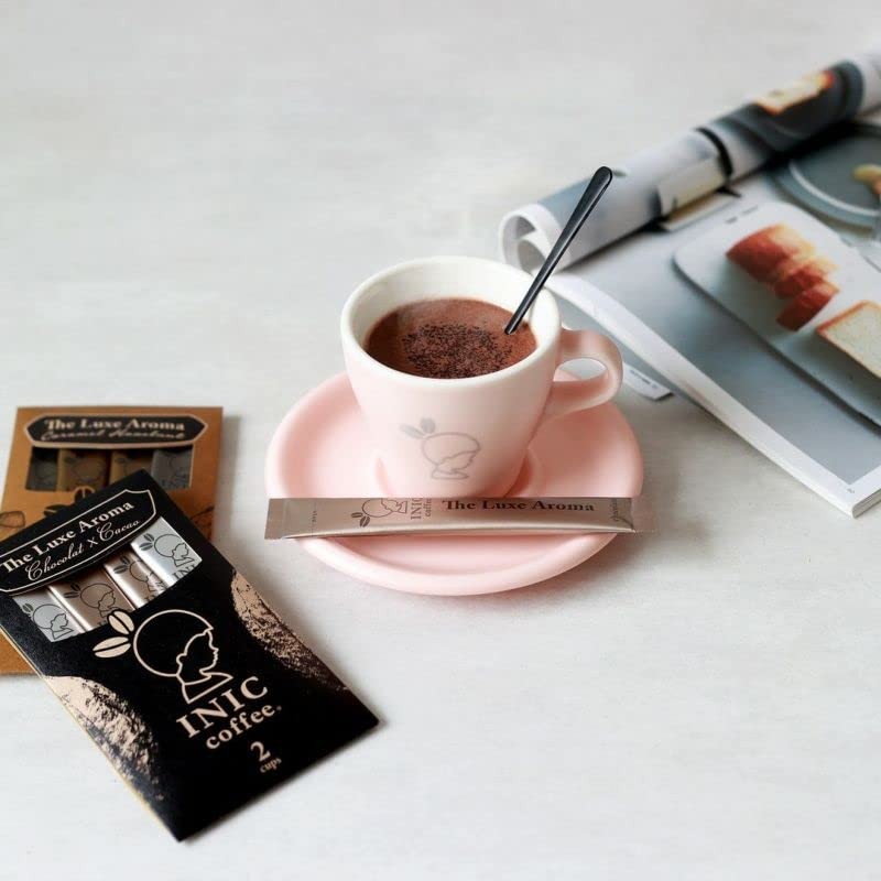 INIC coffee Luxe Aroma Caramel x Chocolat 2 Cups, Sweet and Bitter Caramel Coffee, Luxurious Caramel Chocolat, Top of Powder Coffee