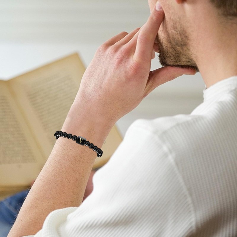 - The initial bracelet can represent the name of anyone you care about. When he wears the bracelet, will always remember you're the important person in his life. Men's bead bracelets are perfect gifts for Fathers' Day, Birthday, Valentine's Day, Thanksgiving, Graduation, or Christmas gifts for your father, husband, son, boyfriend, or someone closest to you.
