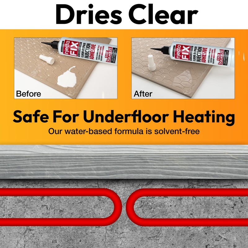 - Experience fast-acting results with Injectafix; our new quick-drying formula sets in just 12-20 hours, allowing you to complete flooring projects swiftly; an excellent solution for those needing efficient glue for laminate flooring and wood floor repair kits