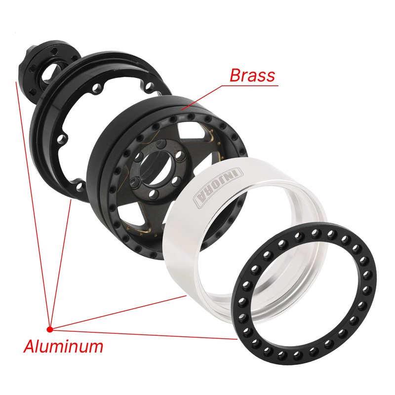 INJORA 1.9 Inch Beadlock Rim - 143g Super Heavy Brass & Aluminium Deep Dish R...