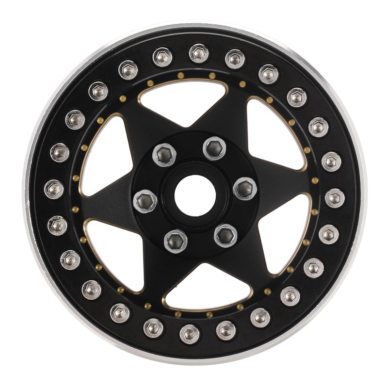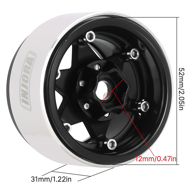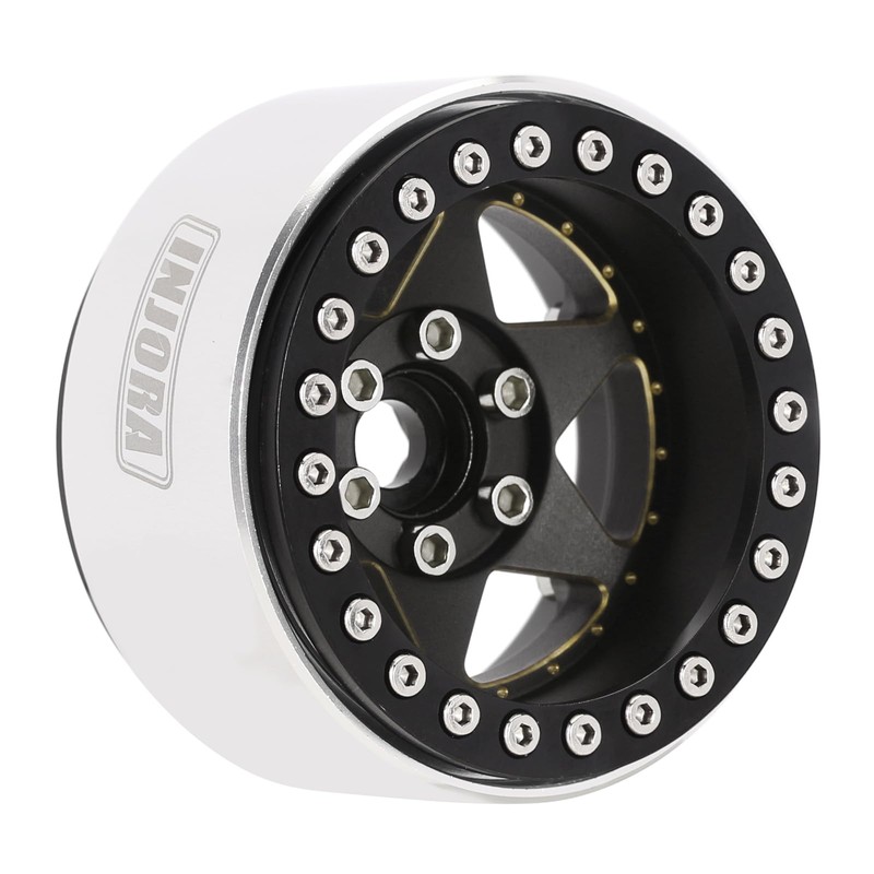 INJORA 1.9 Inch Beadlock Rim - 143g Super Heavy Brass & Aluminium Deep Dish Rim for 1/10 RC Crawler SCX10 TRX4 VS4-10 Gen8, Black