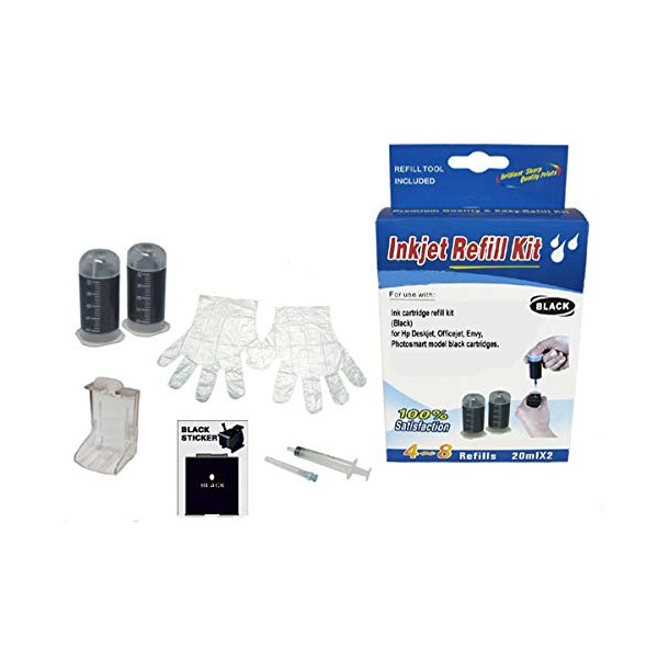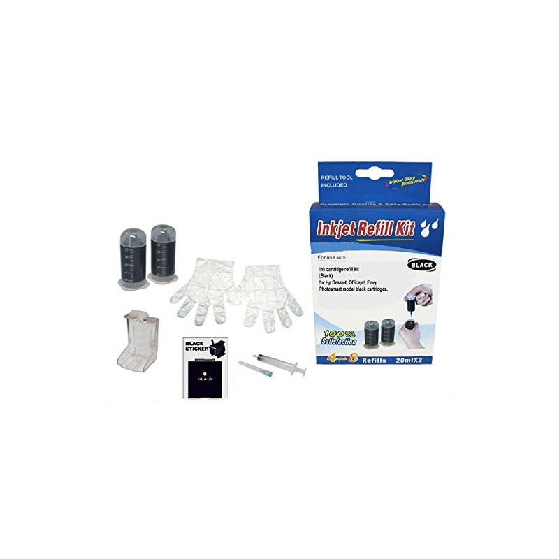- Kit includes: Two 20ml ink containers, refill clip, injection sticker, gloves, injection needle and syringe