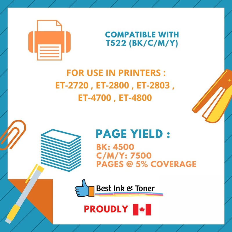 For use in EcoTank ET-2720 EcoTank ET-4700 EcoTank ET-2800 EcoTank ET-2803 EcoTank ET-4800