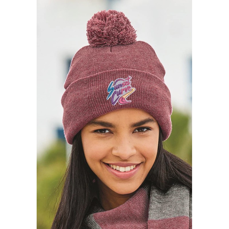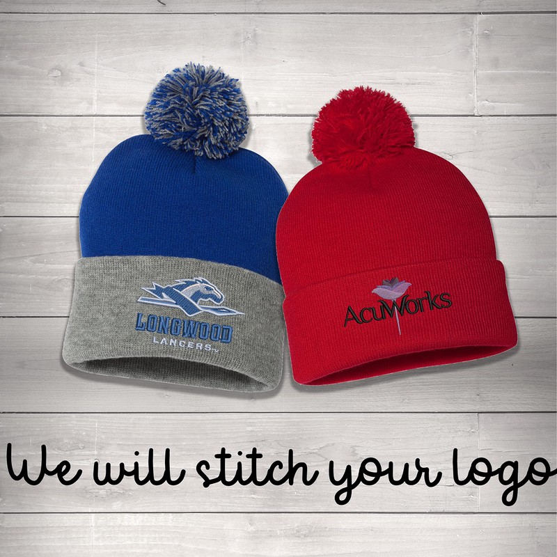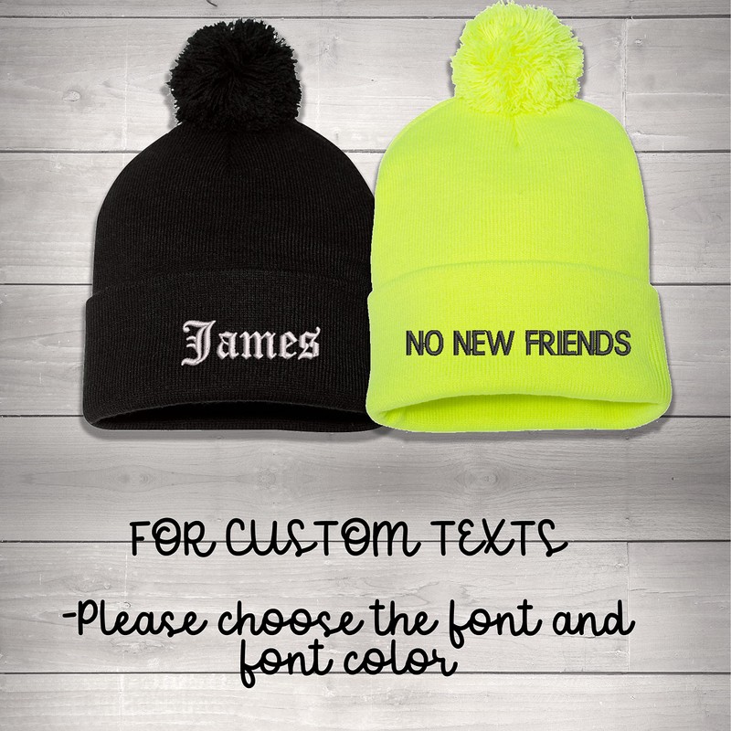 INK STITCH Sp15 Unisex Custom Personalized Add Your Own Logo Texts Pom Beanie Winter Hats (Grey/Black)