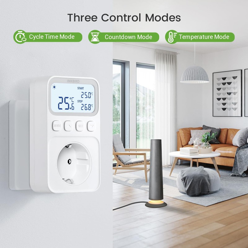 Inkbird ITC-C226T Thermostat Socket with 16 A, Temperature Controller with Timer Heating Cooling for Fridge, Reptile, Greenhouse