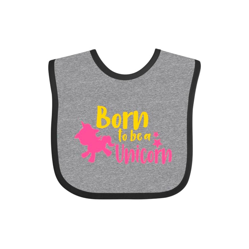 inktastic Born To Be a Unicorn, Unicorn Silhouette, Stars Baby Bib Heather and Black 461bf