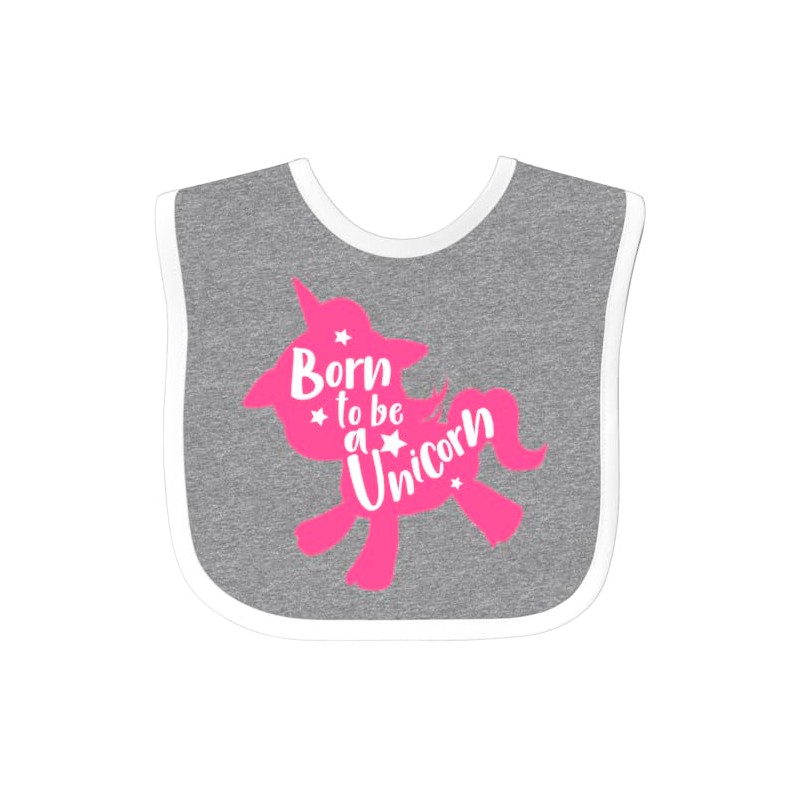 inktastic Born To Be a Unicorn, Unicorn Silhouette, Stars Baby Bib Heather and White 461be