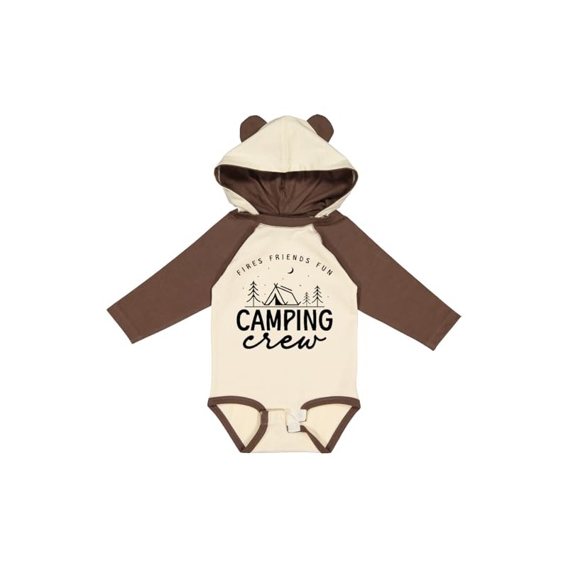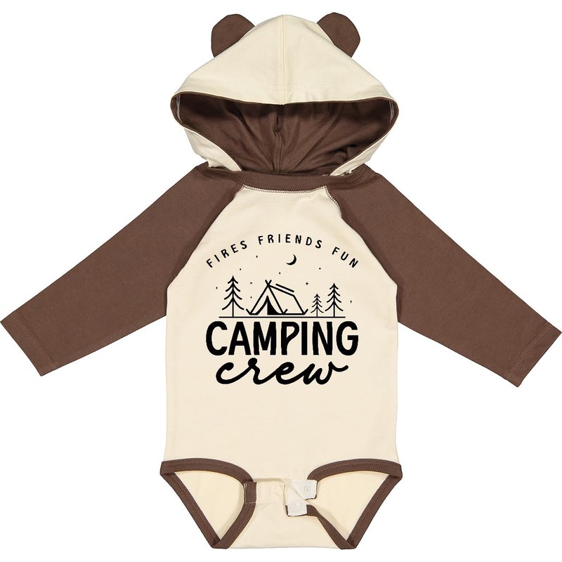 inktastic Camping Crew Long Sleeve Creeper 12 Months Natural & Brown W Ears 4...