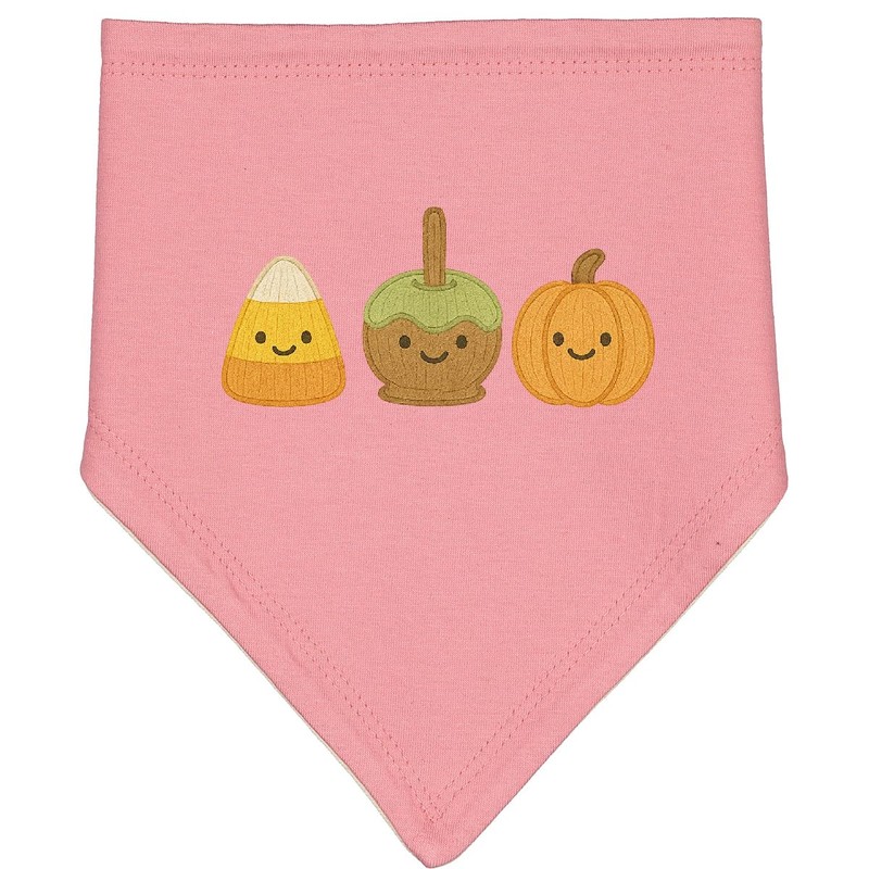 inktastic Cute Fall Candy Corn Caramel Apple Pumpkin Faces Baby Bandana Bib Mauve and Natural 46402